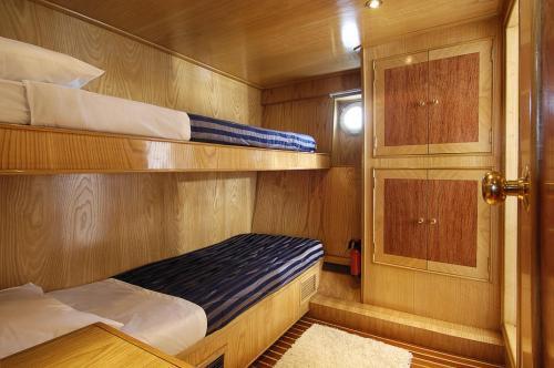 Gli interni sono in legno di radica e la costruzione dello yatch risale al recente 2004.