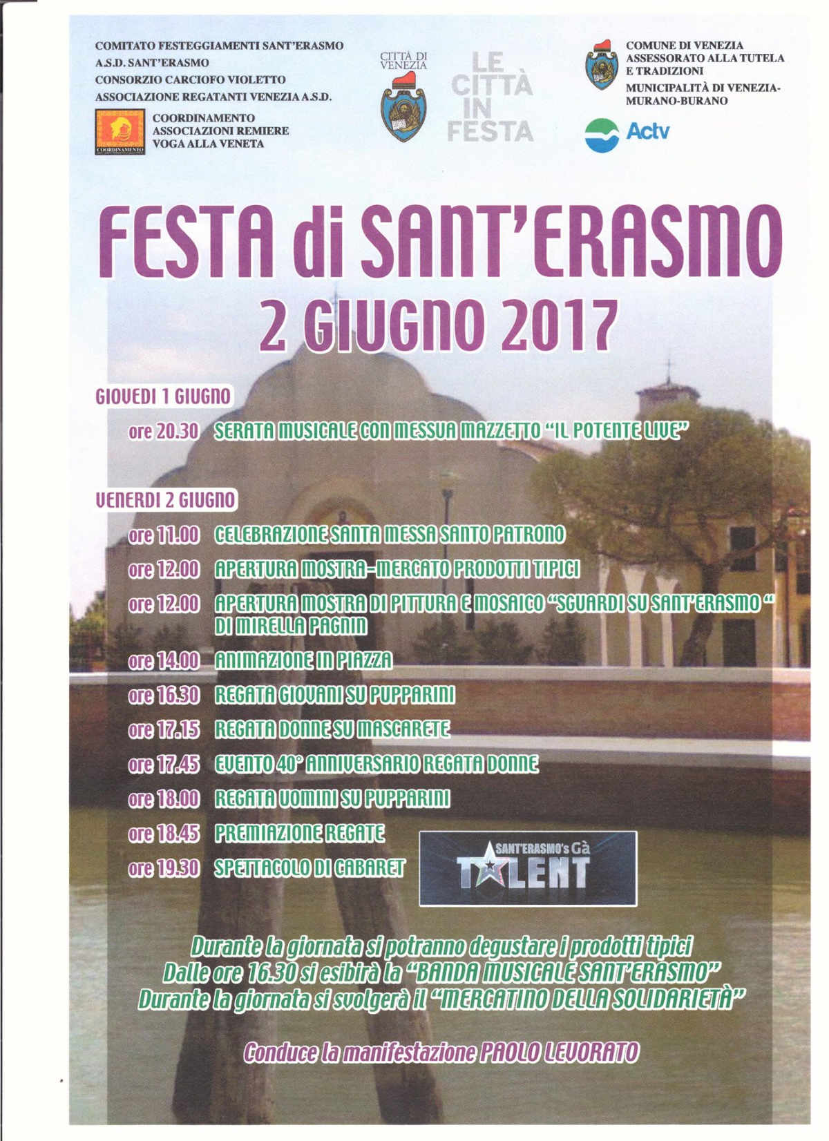 Di seguito pubblichiamo il programma della Festa di Sant'Erasmo 2026: